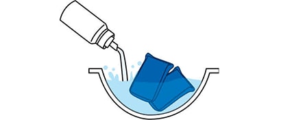 たわし全体をよく水洗いし、洗剤分や食品の残さをすすぎ落とす。
