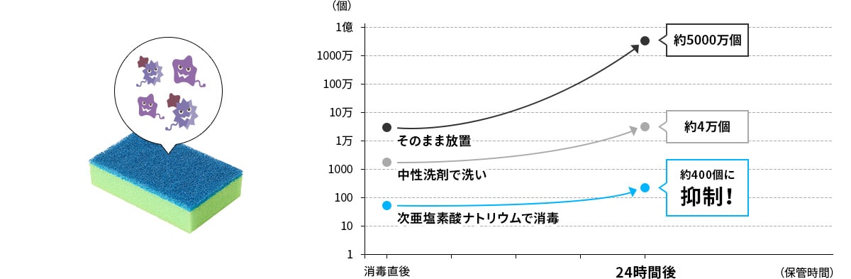 洗浄用具(例えばたわしなど)を不衛生の まま放置していると微生物が発生し食中毒の原因になる可能性があります。