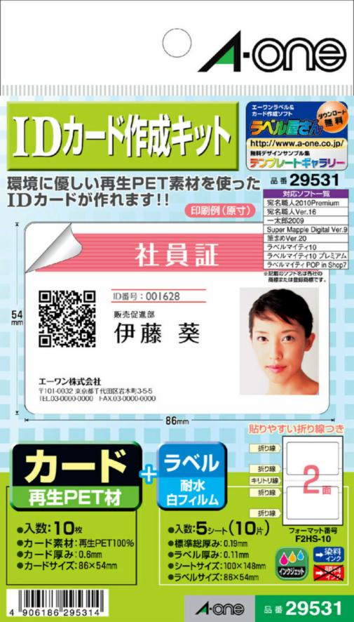 5. エーワン™ IDカード作成キット 29531, ホワイト, インクジェット, はがき, 15 シート/パック